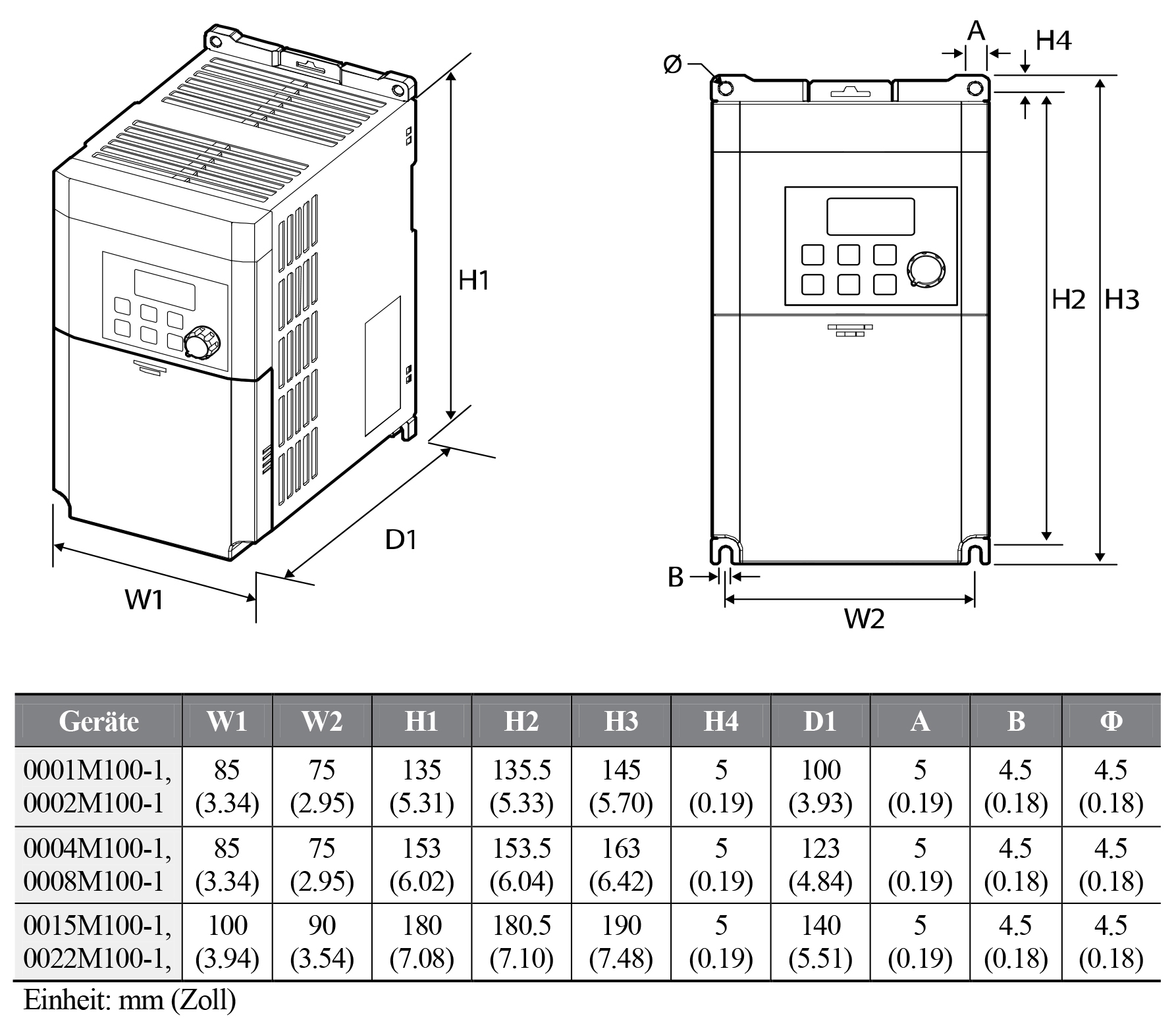 - Brems-Chopper bei 1.5kW und 2.2kW Ausführung