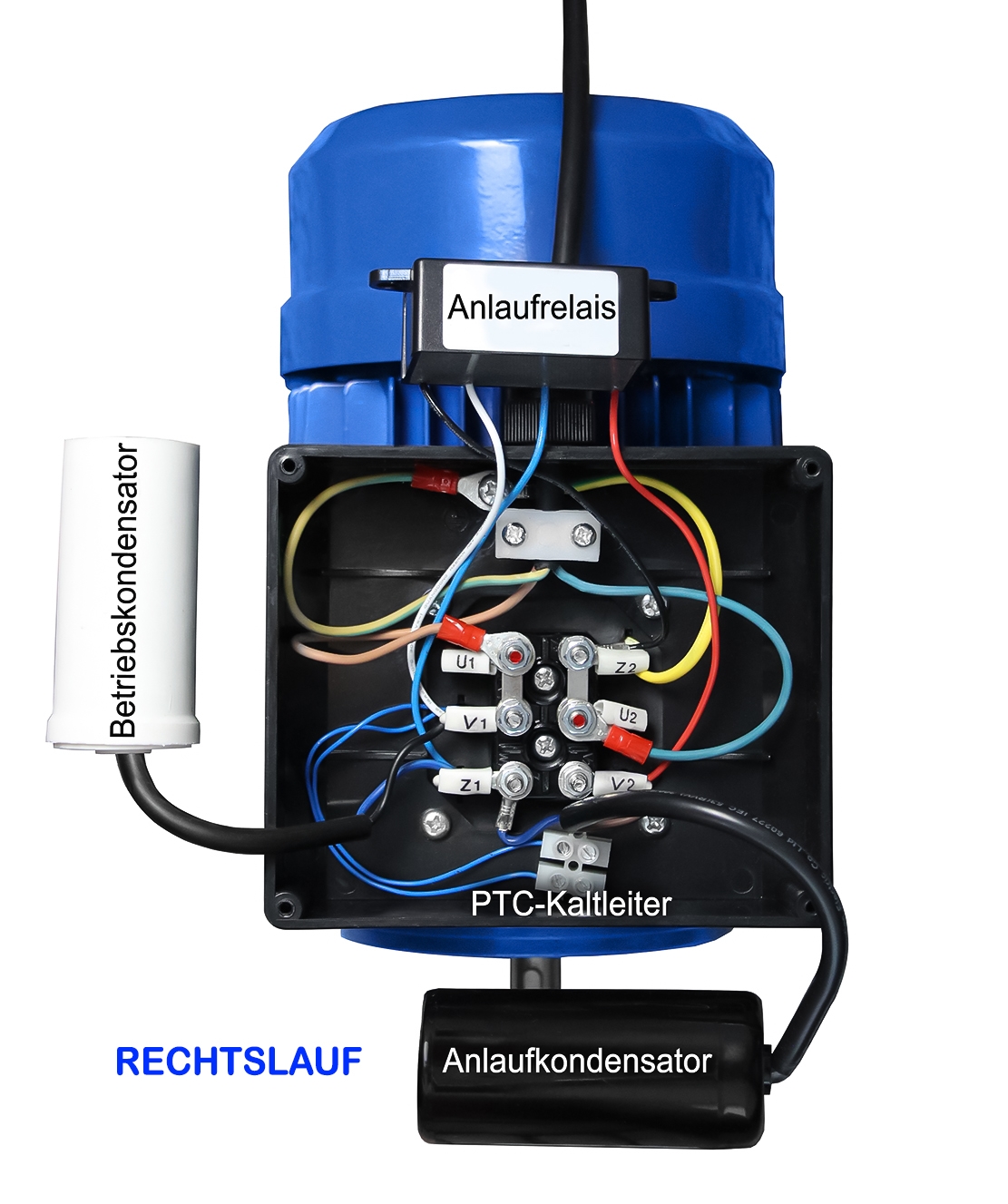 Single phase motors are suitable for both directions of rotation (see connection diagram).