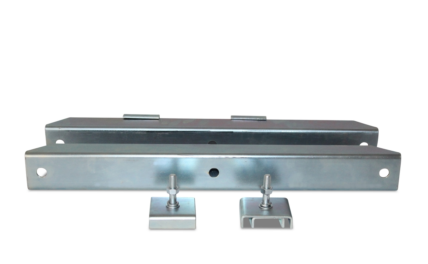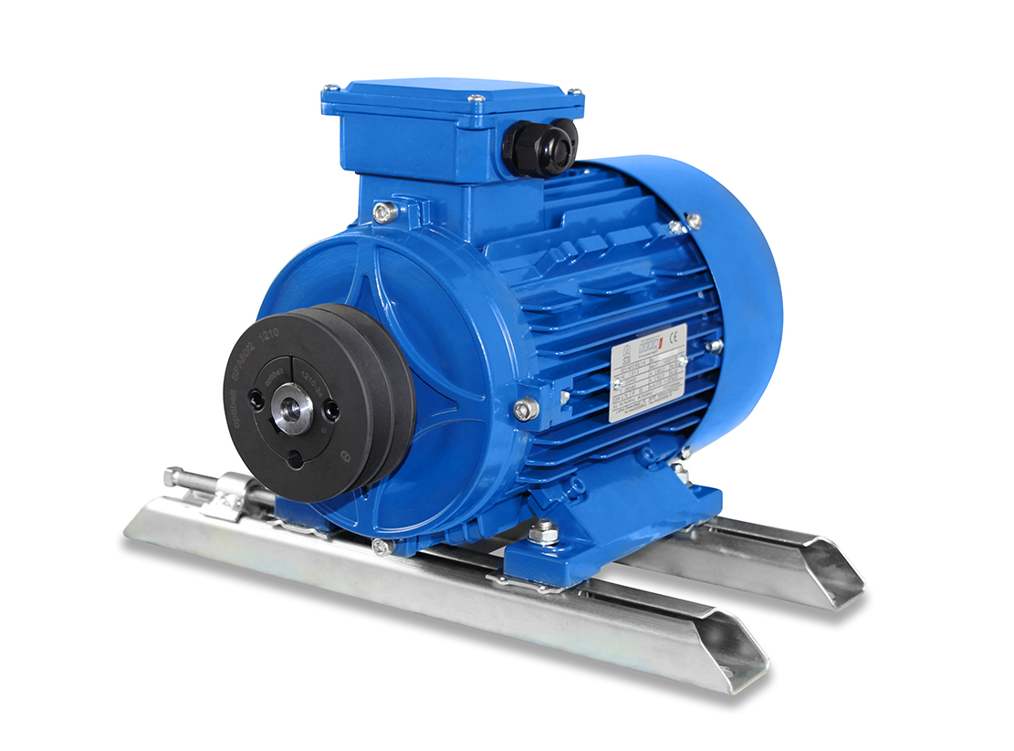 Motor mounting slide rails for size 250 - 280 electric motors, with fixed clamping block, made of galvanized sheet steel.